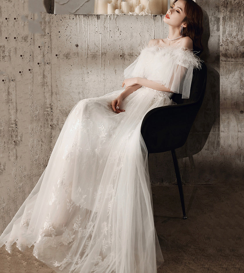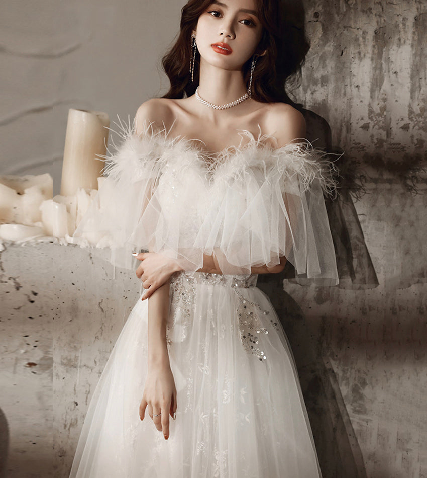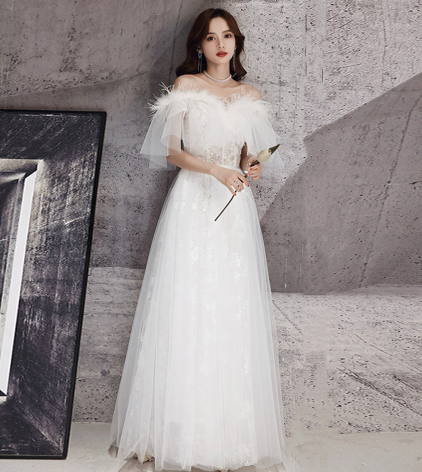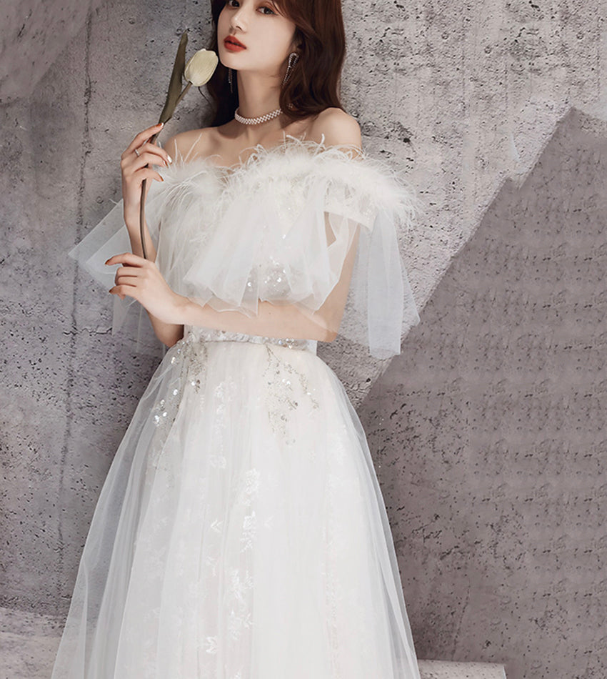 Unique tulle sequins long prom dress white evening dress HZ1023
