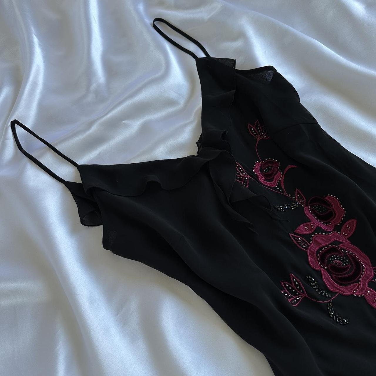 Black Elegant Delicate Red Rose Floral Beaded Long Chiffon Ball Gown Evening Dress Party Dress Prom Dress HZ1023