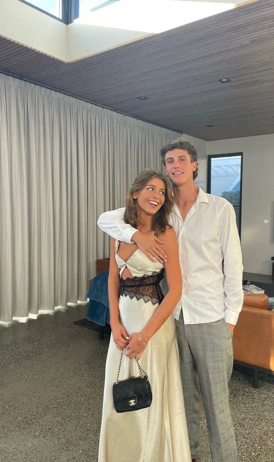 Ivory White Sexy Hollow Lace Long Elegant prom dress Evening Dress Party Dress HZ1023