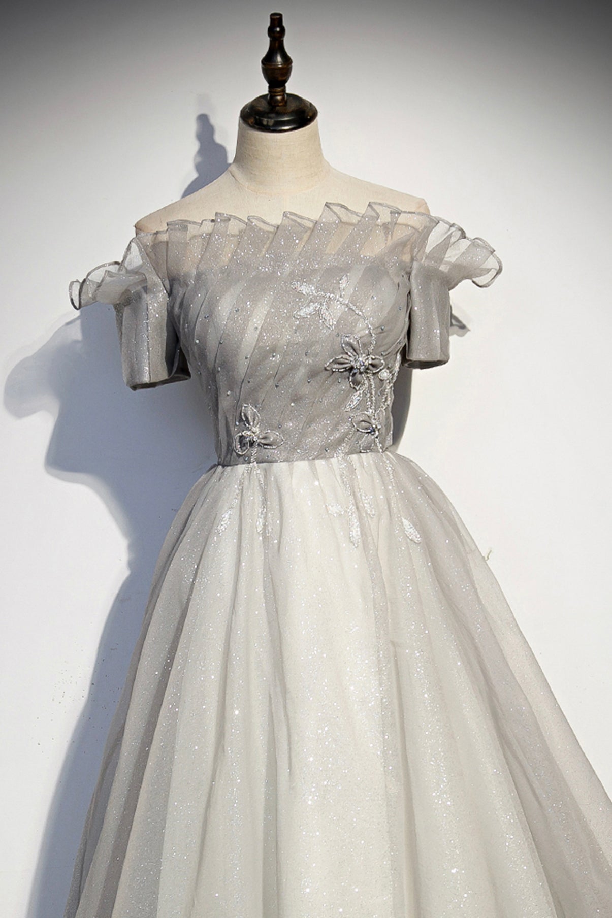 Silver tulle long ball gown dress formal dress HZ1023