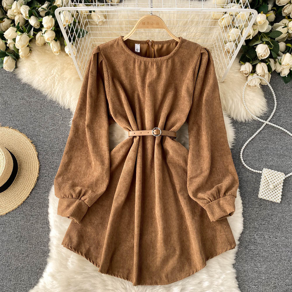 Simple Corduroy Long Sleeve Dress Fashion Dress HZ1023