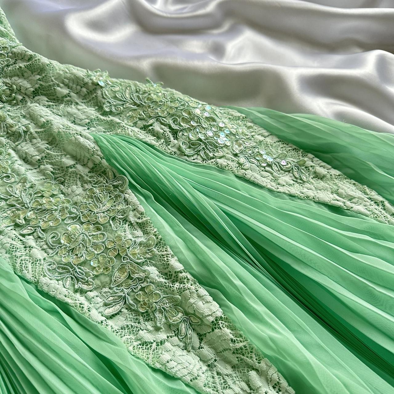 Mint Green Shiny Charming Stunning Unique Fashion Beautiful Elegant Delicate Lace Long Lace Sequin Fairy Ball Gown Evening Gown Birthday Party Gown Prom Gown HZ1023