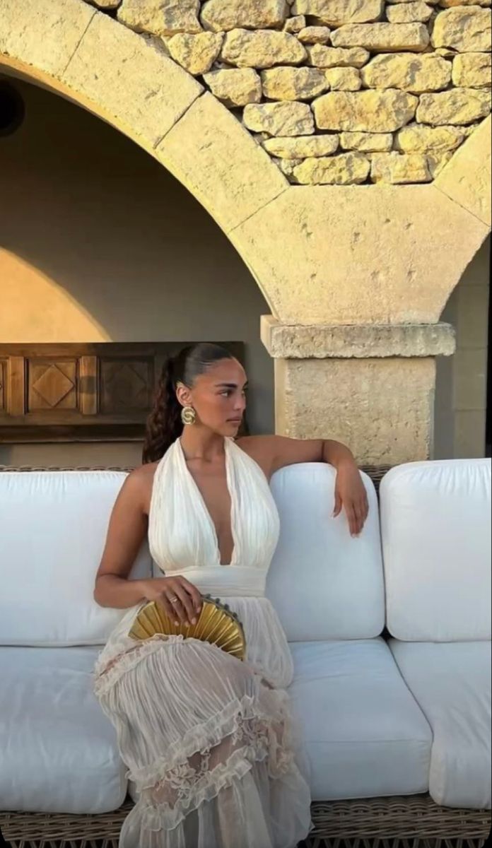 White V-neck tulle lace long elegant sexy ball gown evening dress party dress HZ1023