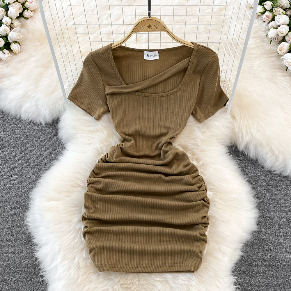 Design sense long sleeve slim fit wrinkled short Hip Wrap Dress HZ1023