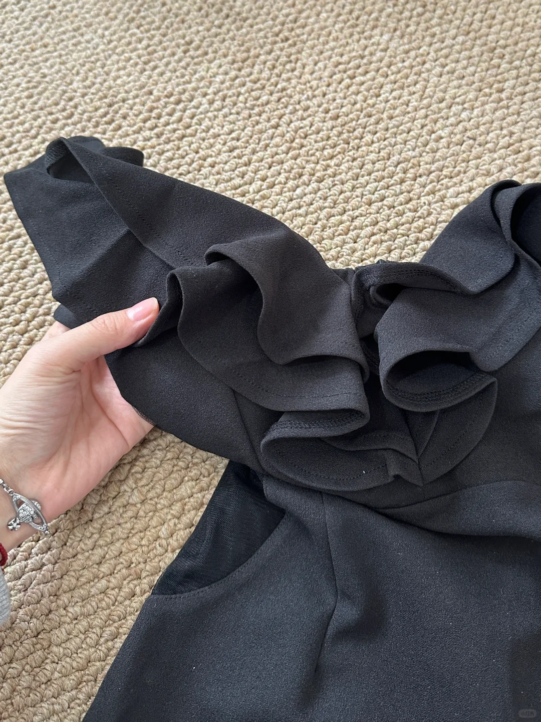 Red/Black Fashion Elegant Ruffle Neckline Short Satin Homecoming Dress Prom Dress Evening Dress Party Dress Ball Gown HZ1023