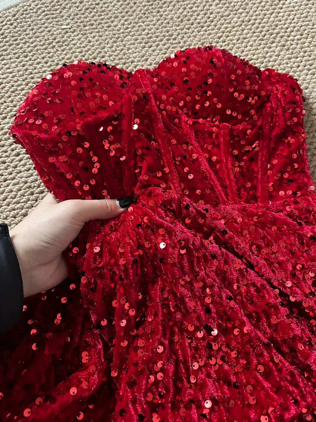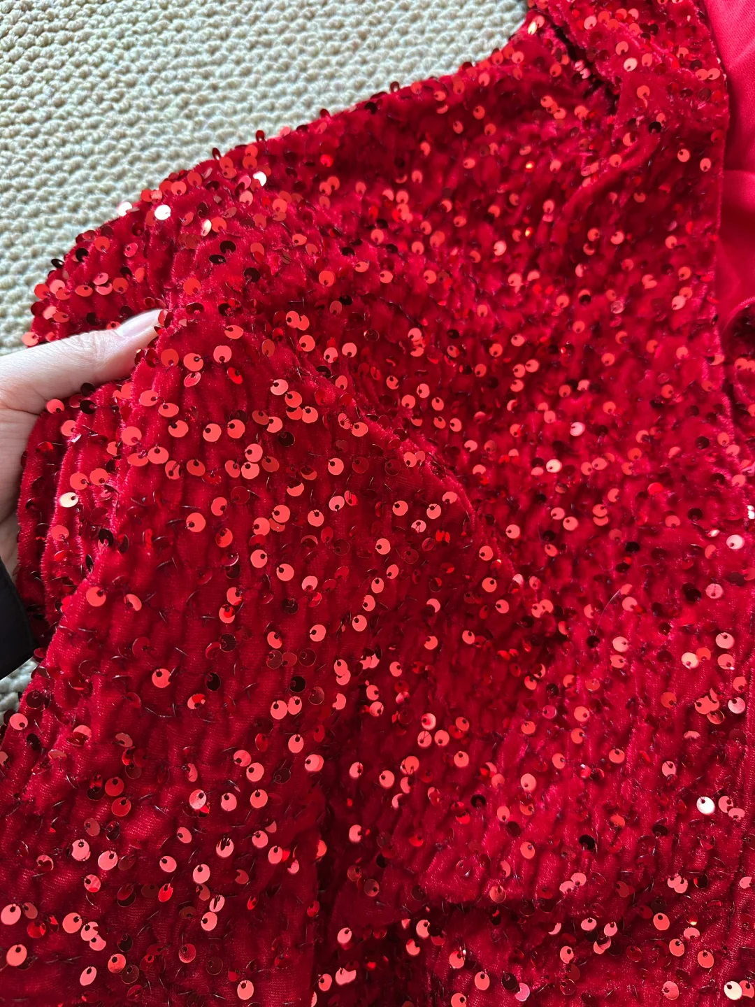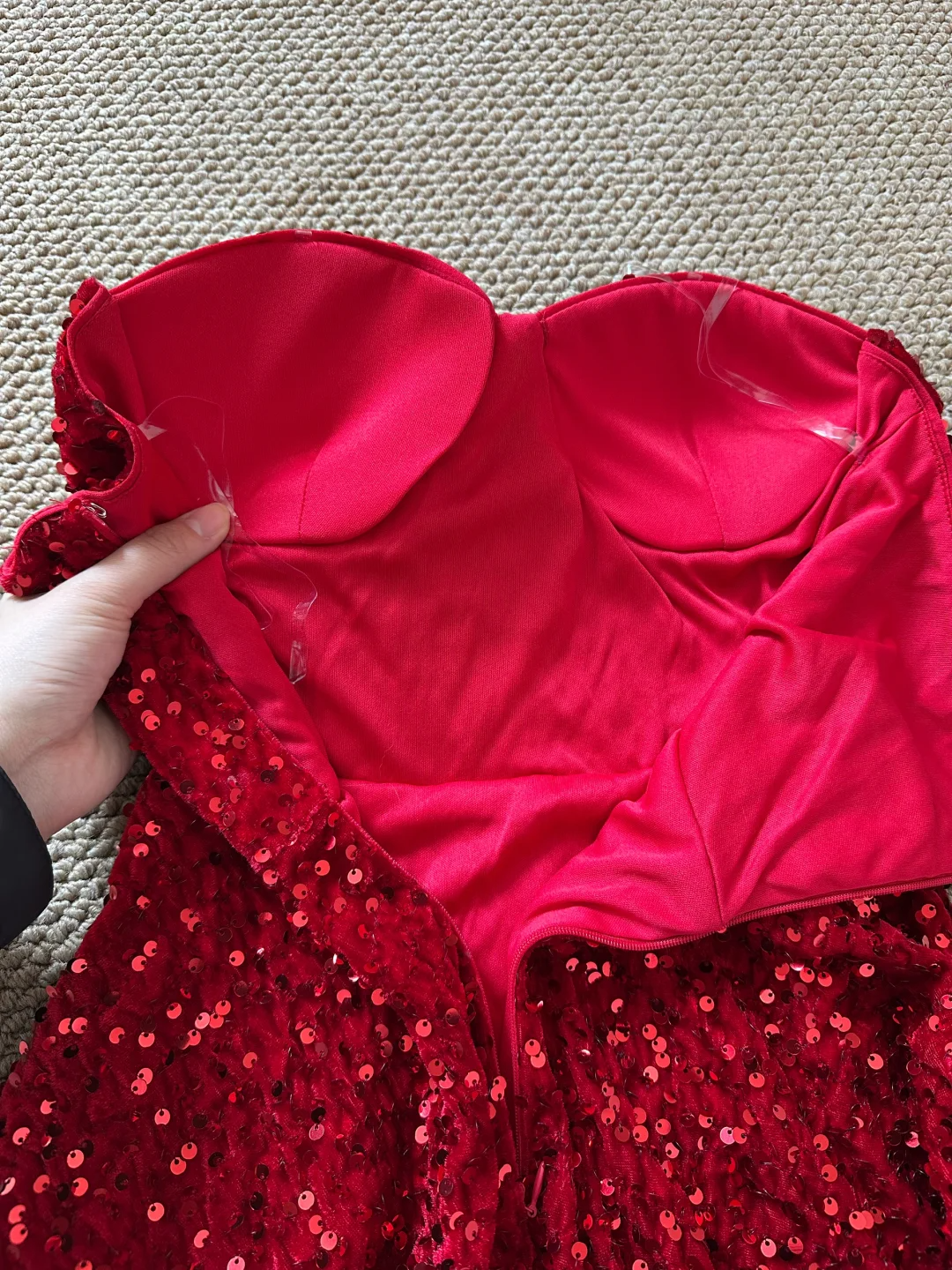 Red Shiny Fashion Short Mini Sequin Homecoming Dress Birthday Party Dress HZ1023