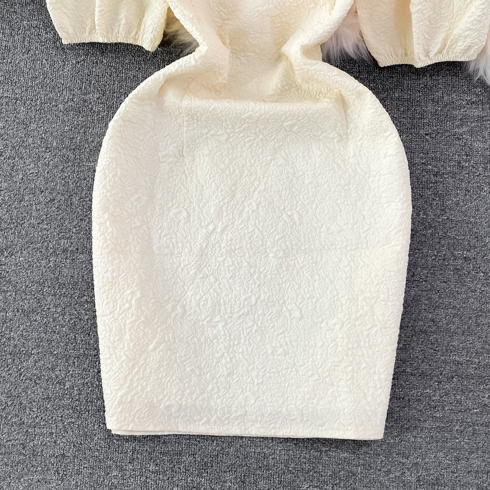 V-neck slim jacquard short A-line dress short sleeve HZ1023