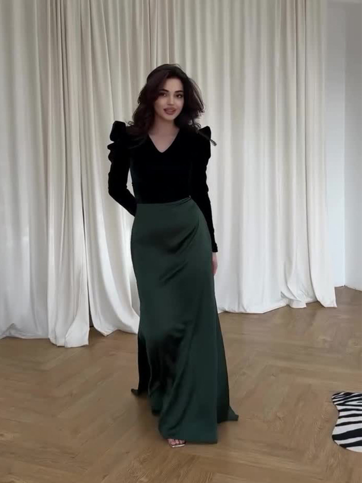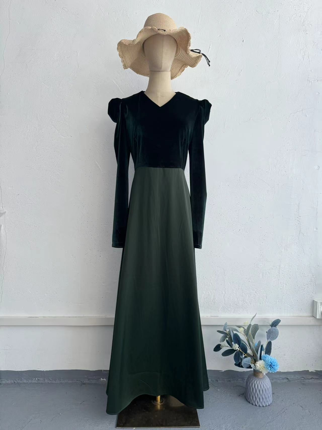 2024 Autumn Fashion Temperament Velvet Splicing V-Neck Intellectual Belt Long Dress 68HZ