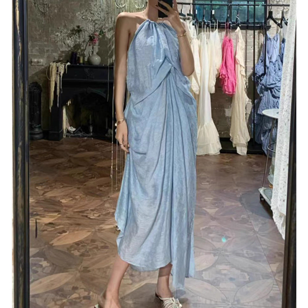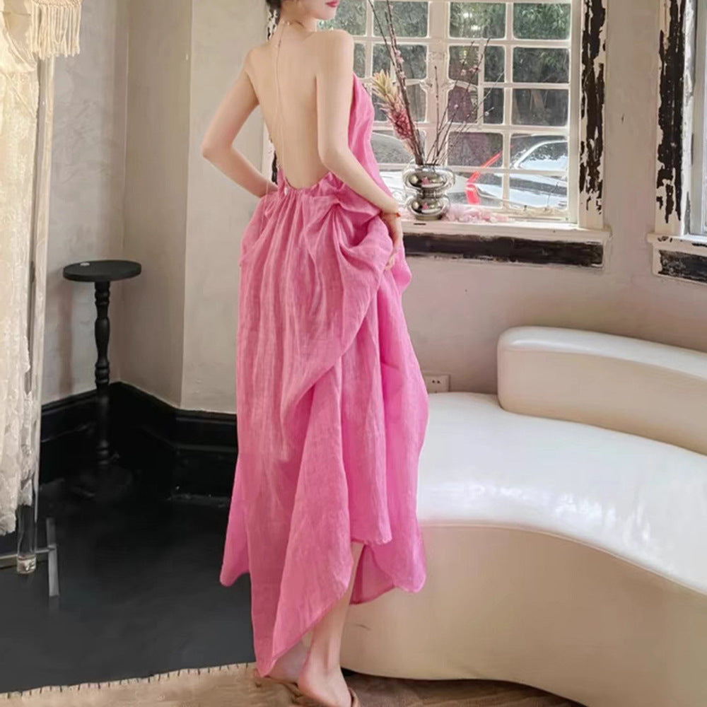 /2024 New Elegant Loose Folded Neck Dress Sexy Bare Sleeveless Holiday Dress 68HZ