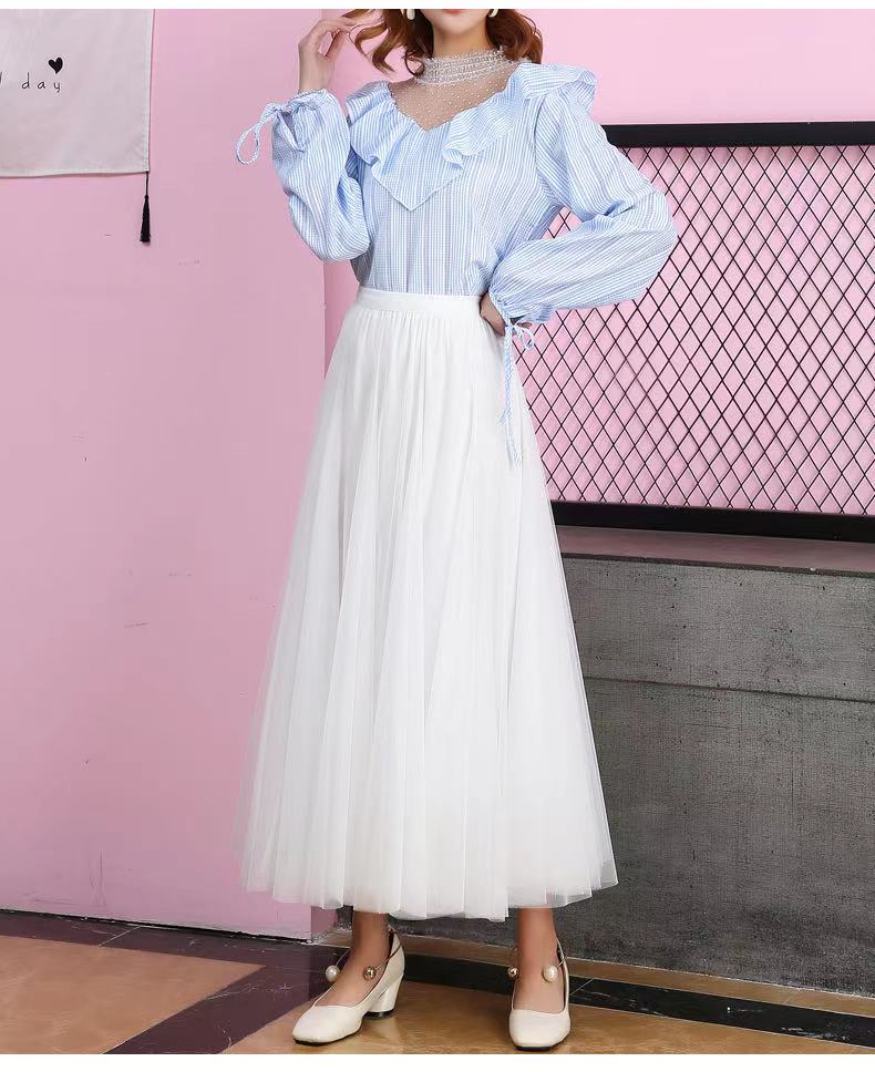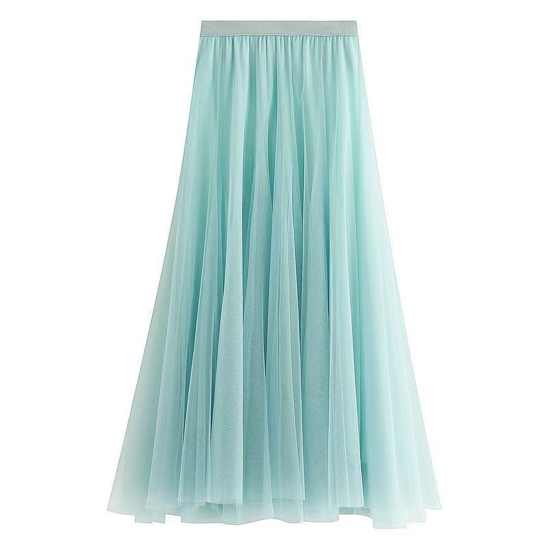 Big swing bouffant ankle-length skirt, high waist slim fairy skirt, net gauze skirt A-line skirt HZ1023