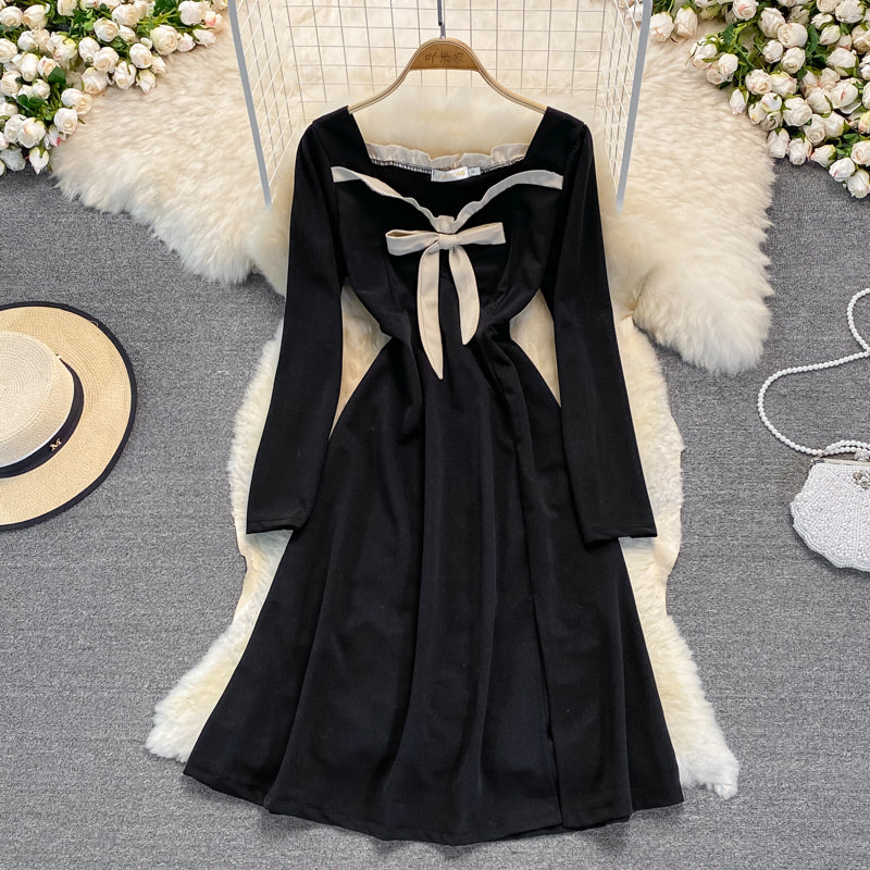 Black A Line Long Sleeve Dress A Line Fashion Dress HZ1023
