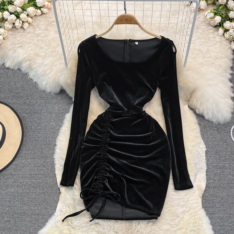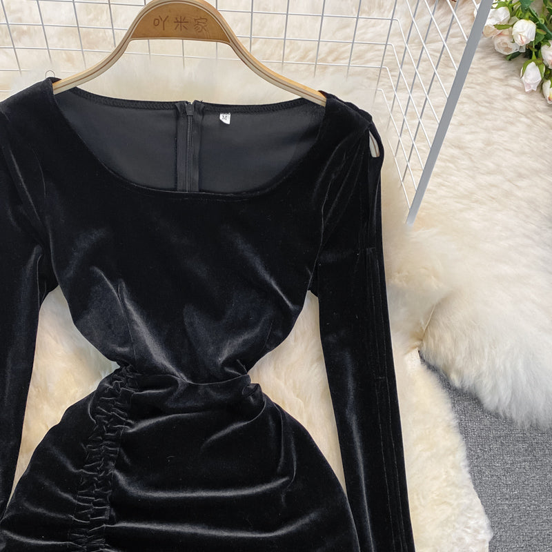 Black Velvet Long Sleeve Dress Sexy Dress HZ1023