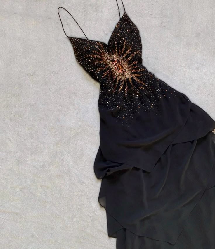 Black vintage fashion beaded spaghetti strap long chiffon formal prom dress, evening dress, party dress HZ1023