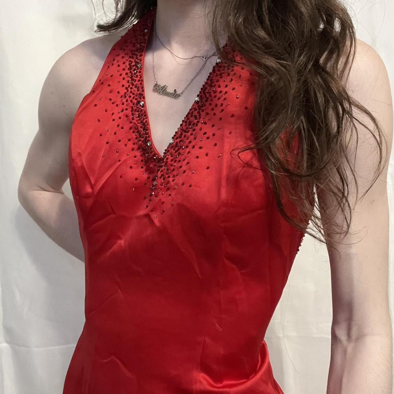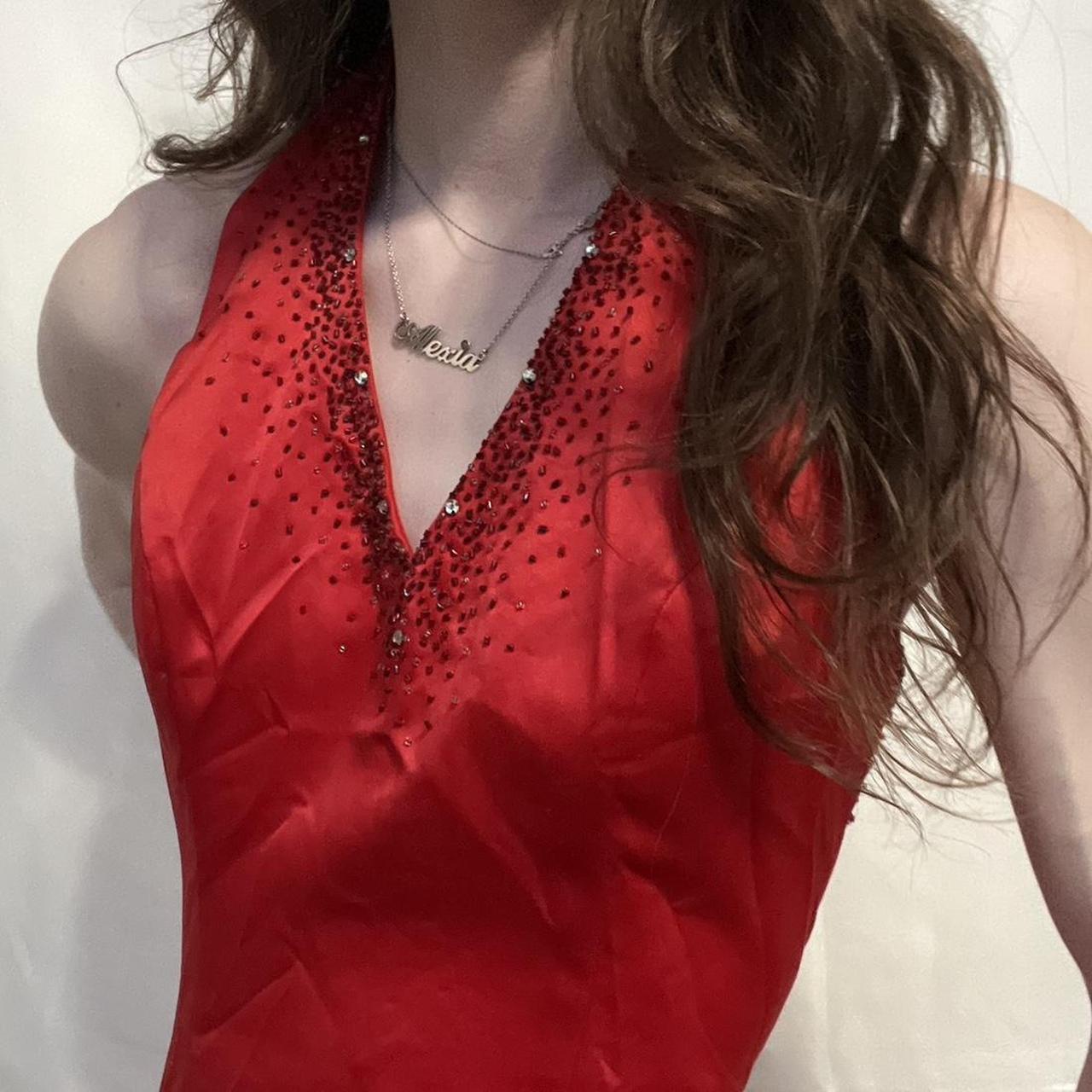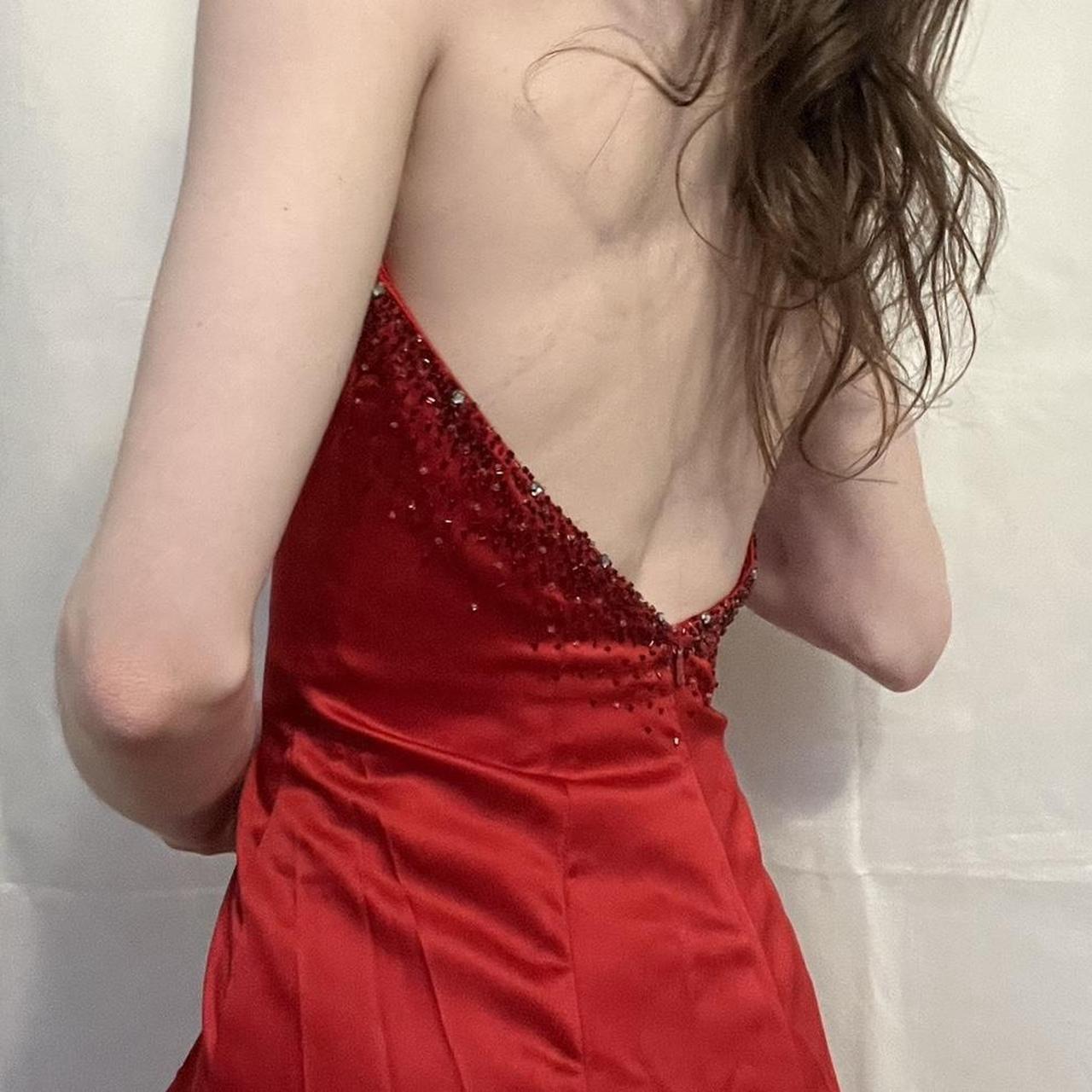 Cherry Red Vintage Exquisite Beading Gorgeous Bright Sexy Backless Long Satin Slit Formal Prom Dress Evening Dress Wedding Guest Dress Birthday Party Dress HZ1023