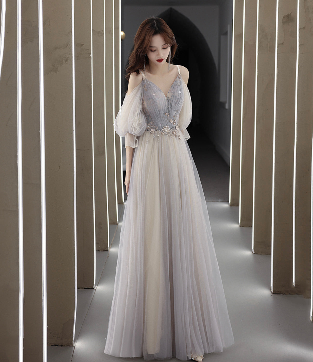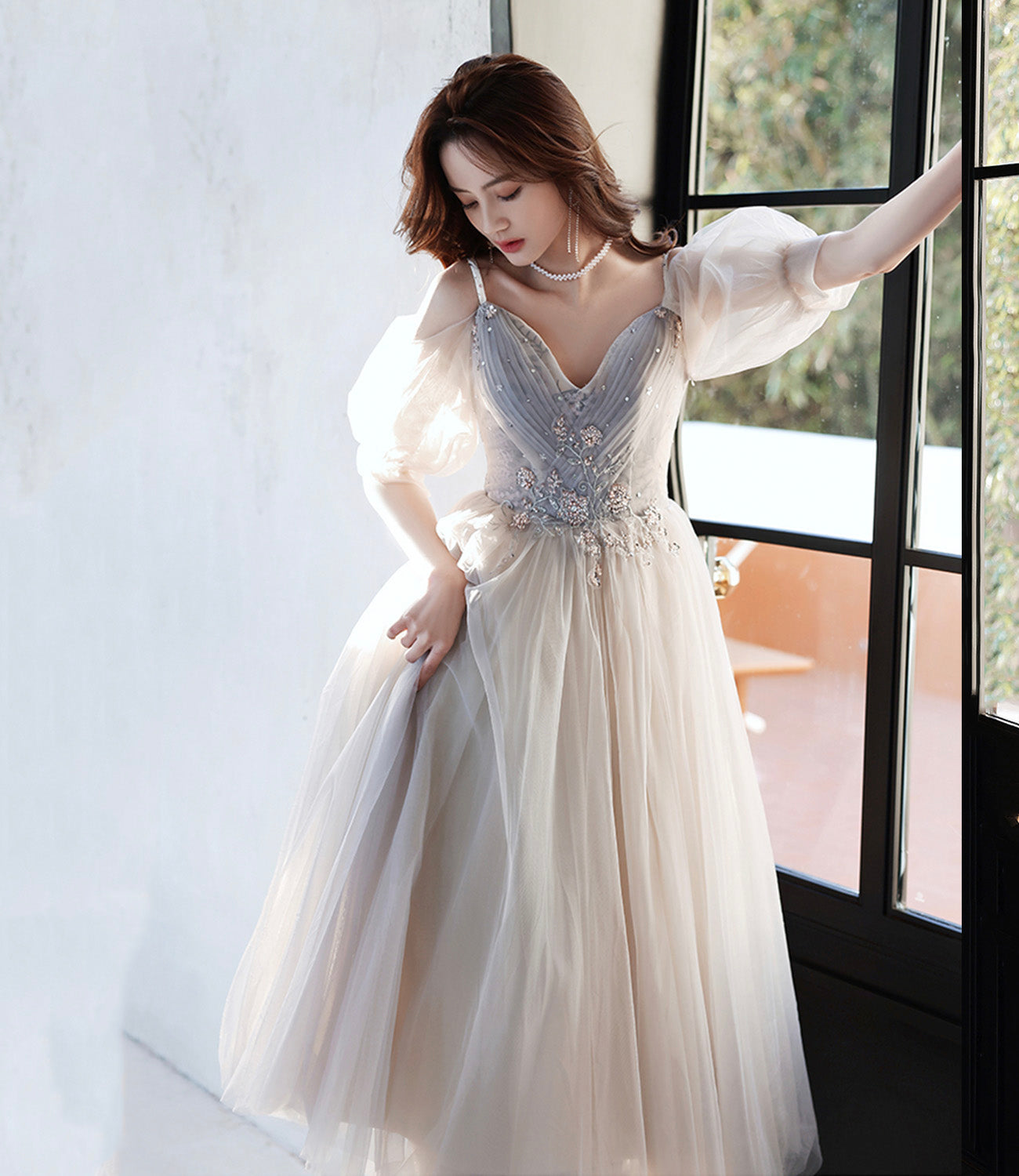 Cute tulle lace A line prom dress lace evening dress HZ1023
