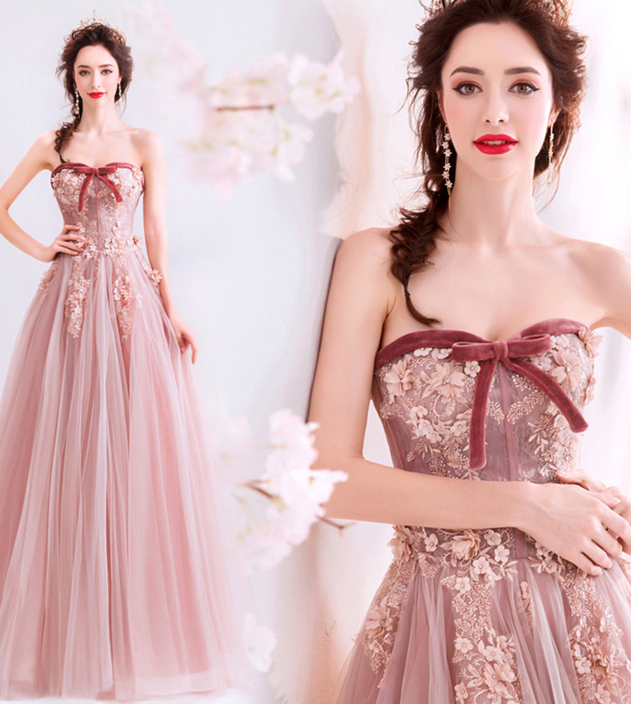 Cute tulle lace long A line prom dress evening dress HZ1023