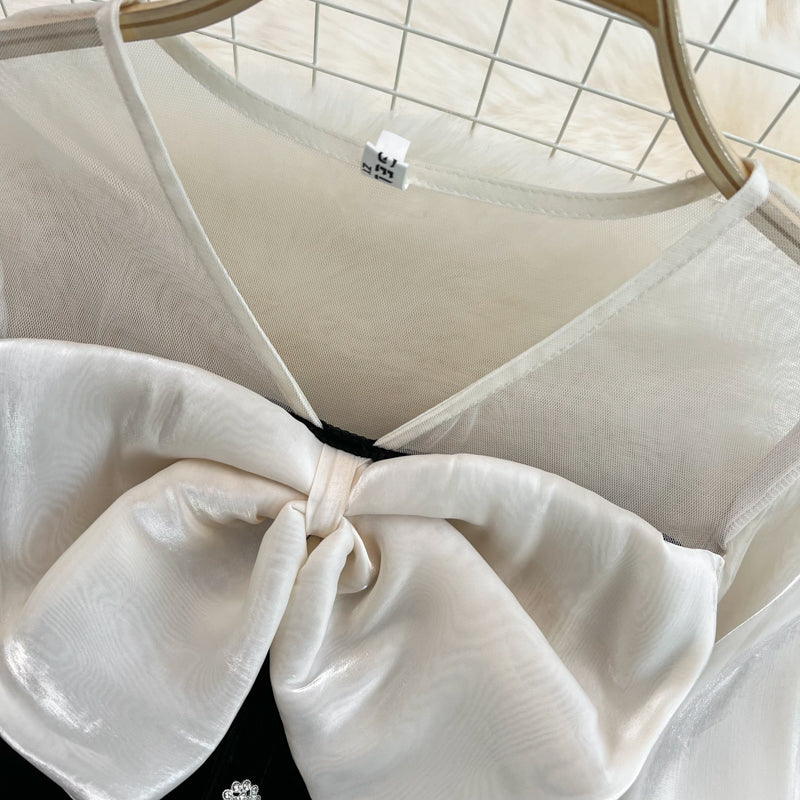 Cute V-Neck Bow Long Sleeve Dress Black Fashion Dress HZ1023