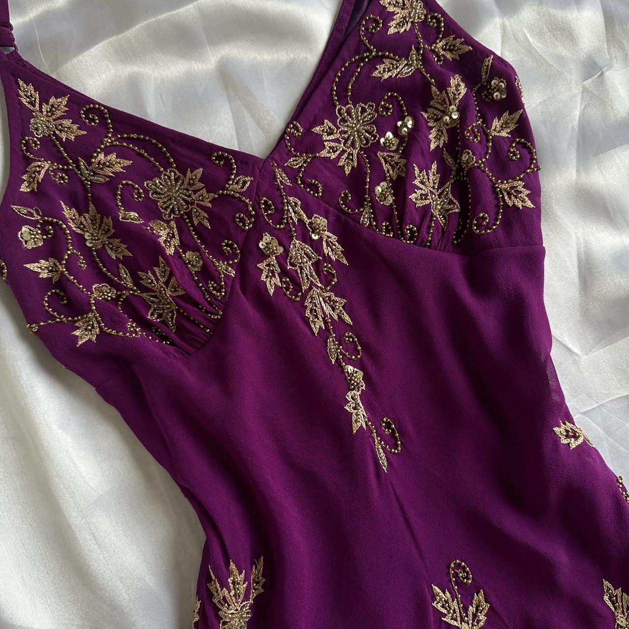 ??? Dark Purple/Green Shiny Beautiful Vintage Gorgeous Fashion Elegant Delicate Gold Beaded Midi/Short Chiffon Flowing Homecoming Dress Prom Dress Evening Dress Birthday Wedding Guest Party Dress Prom Dress HZ1023