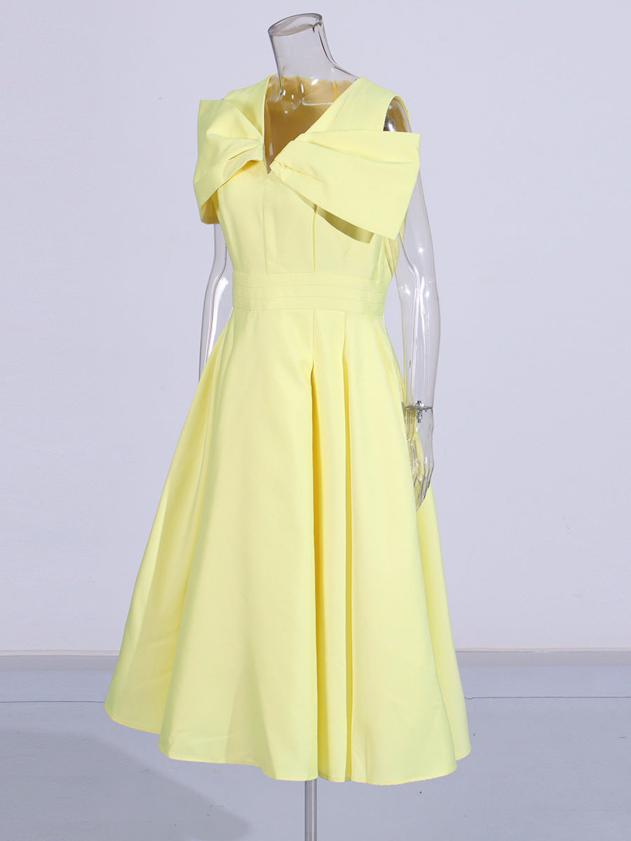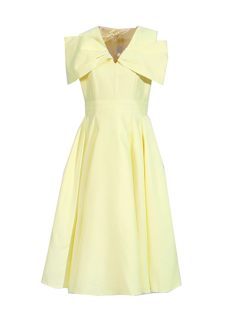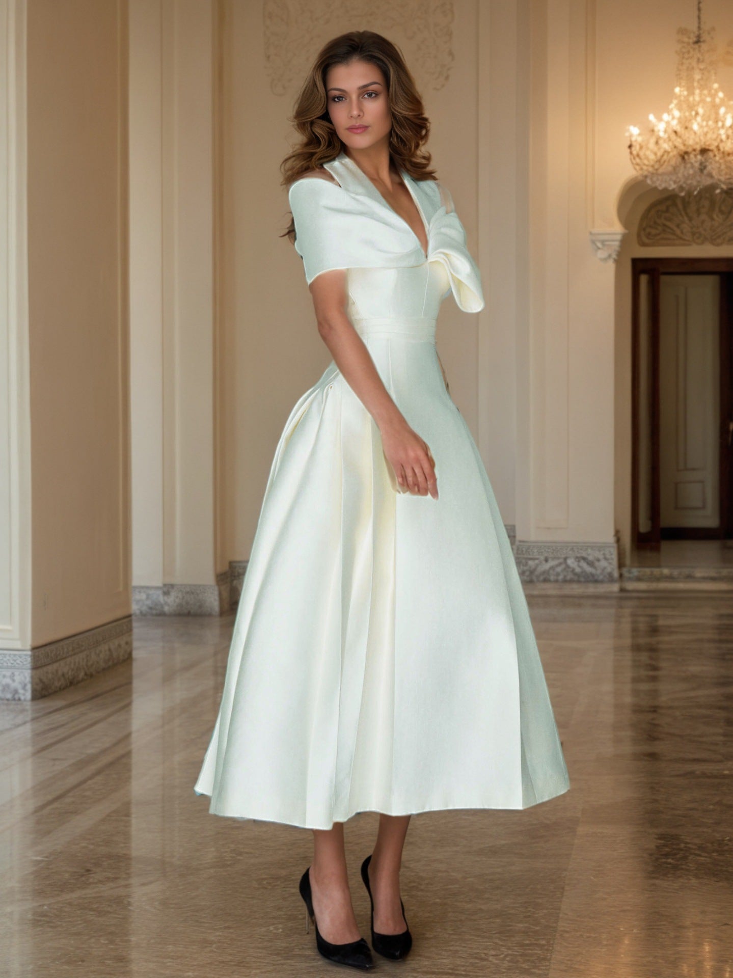 Elegant High-End Sense Court Style Retro 2025 Summer New Medium-Long V-Neck Short Sleeves To Close Waist Solid Color Dress Woman 68HZ