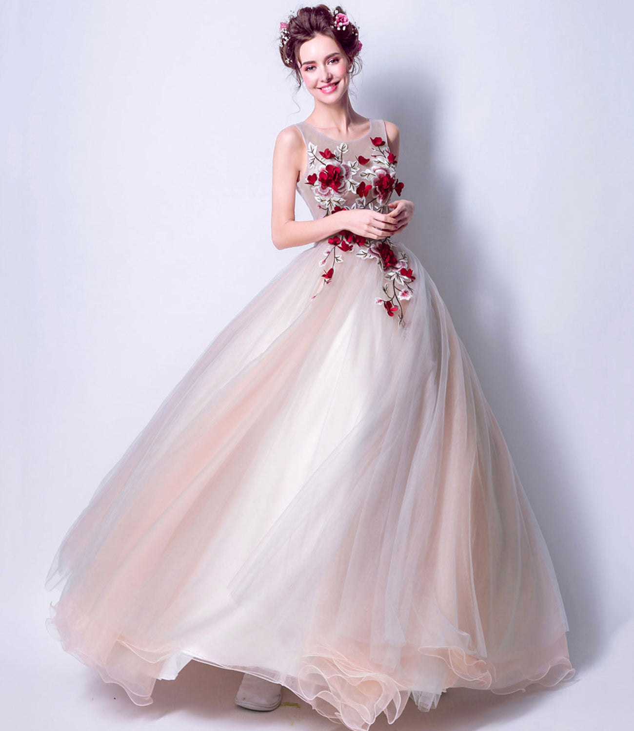 Elegant tulle applique long A line prom dress evening dress HZ1023