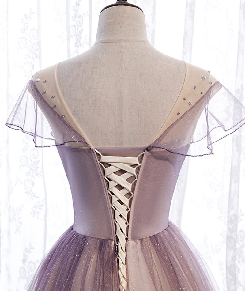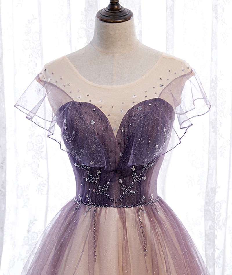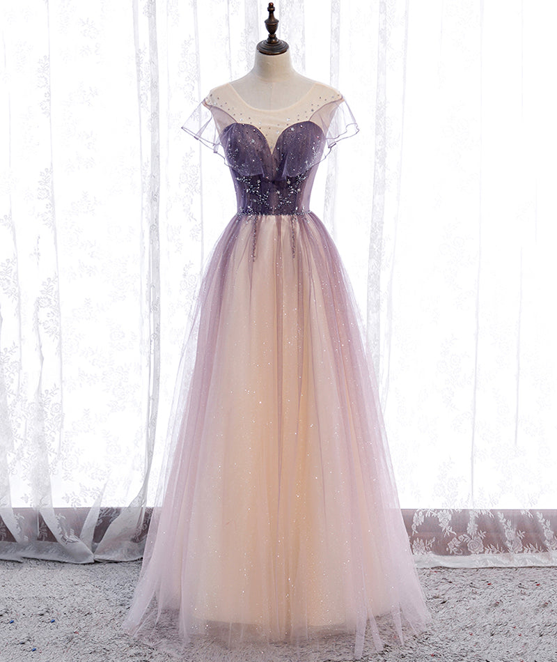 Elegant tulle sequins prom dress A line evening dress HZ1023