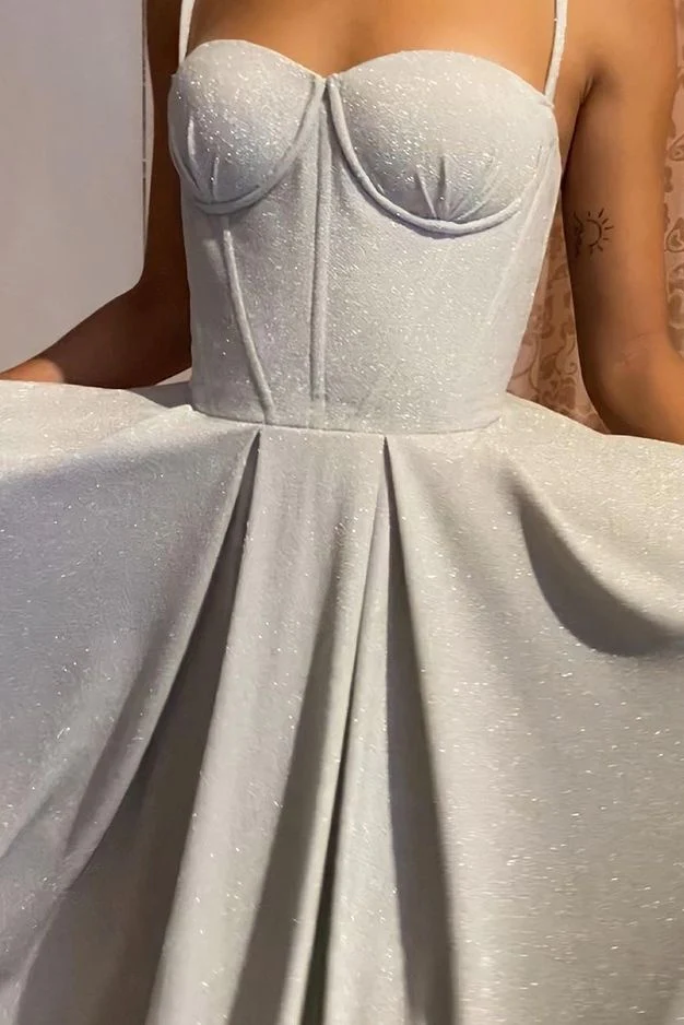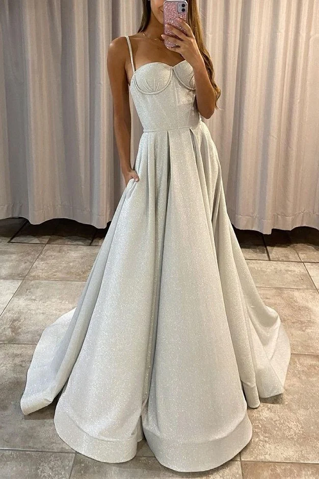 Glitter Spaghetti Straps Sweetheart Long Prom Dress With Pockets HZ1023