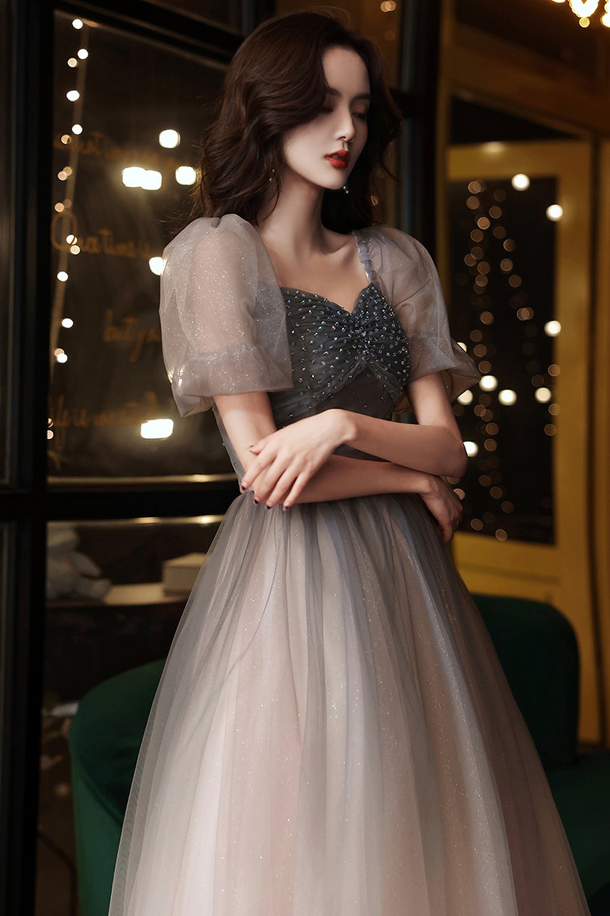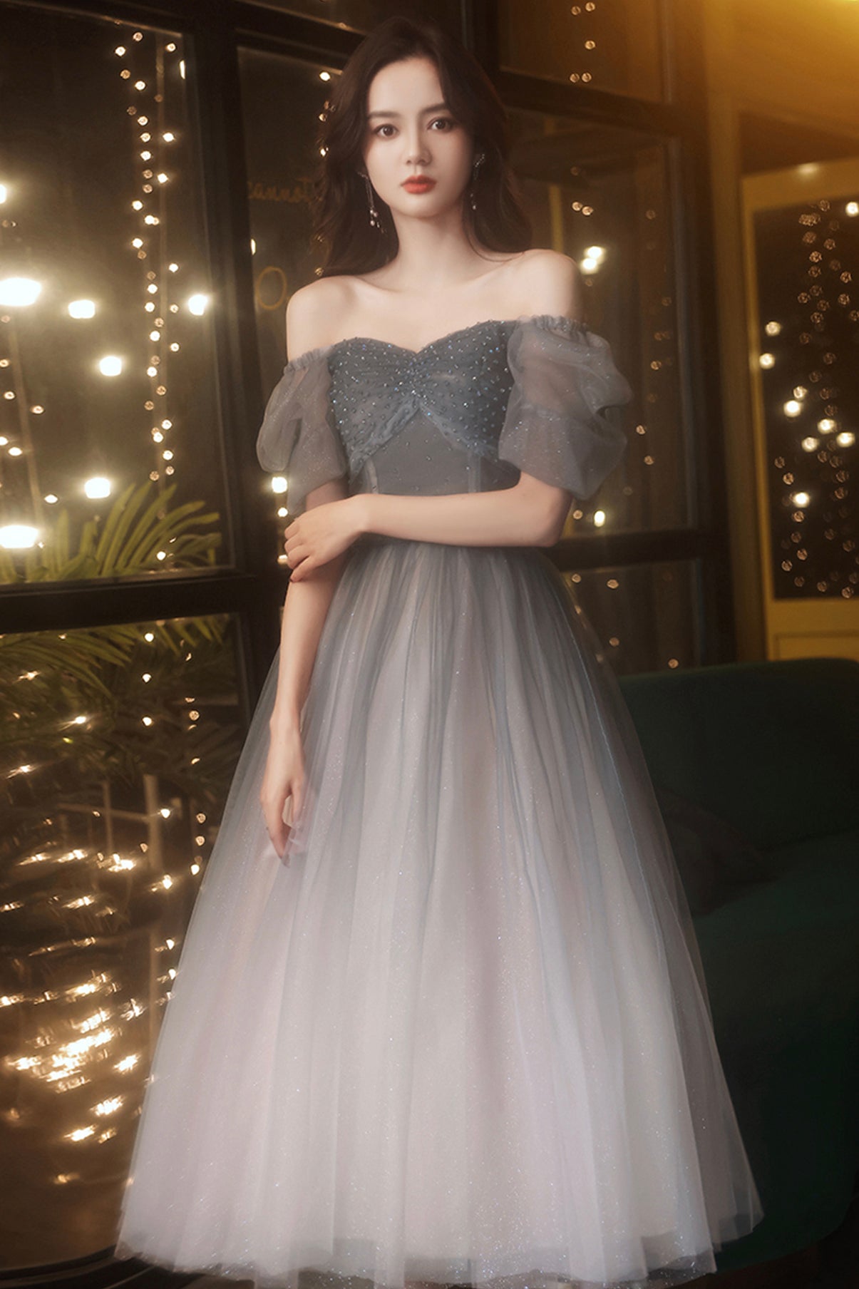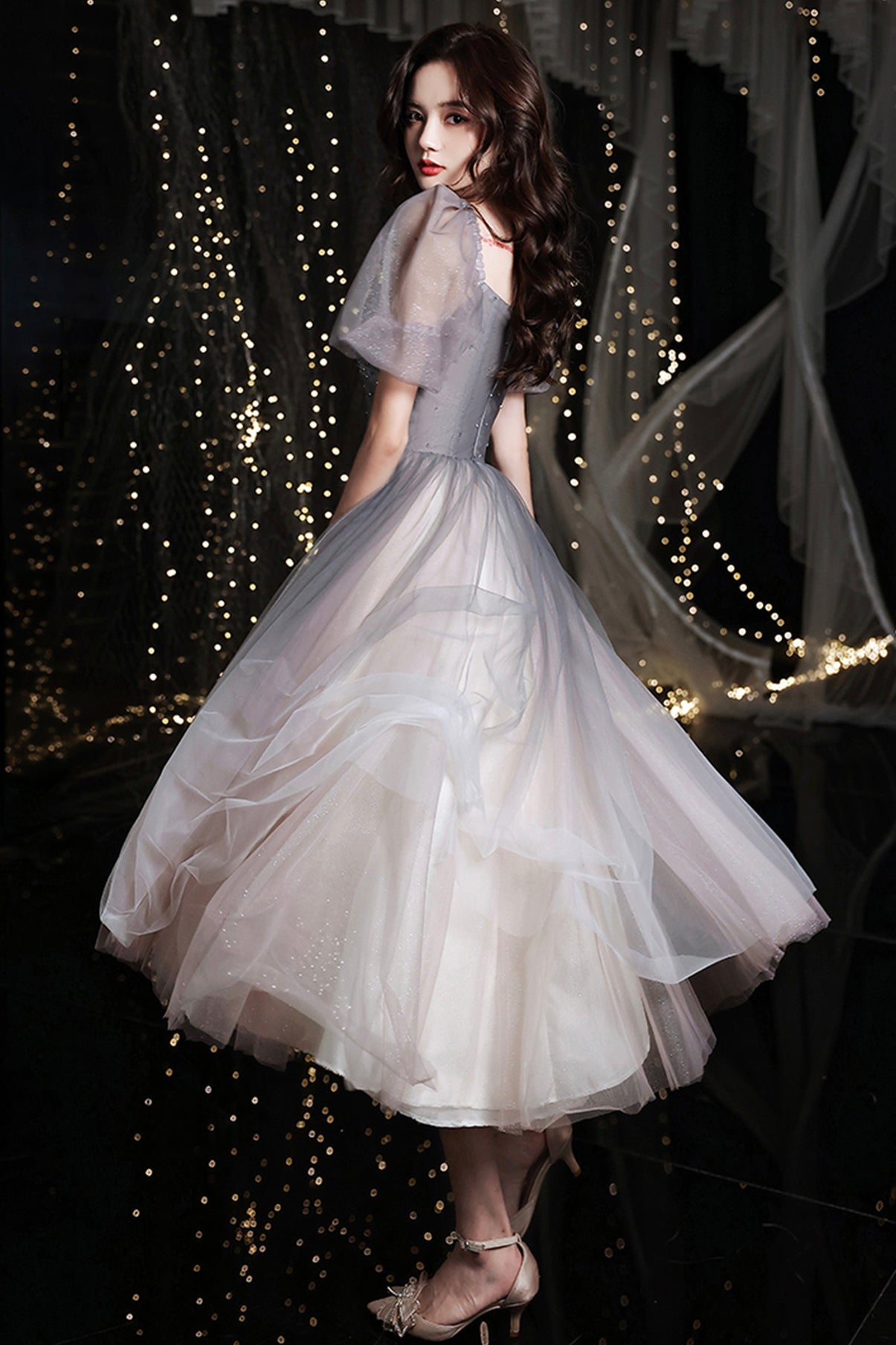 Gray tulle short A line prom dress homecoming dress HZ1023