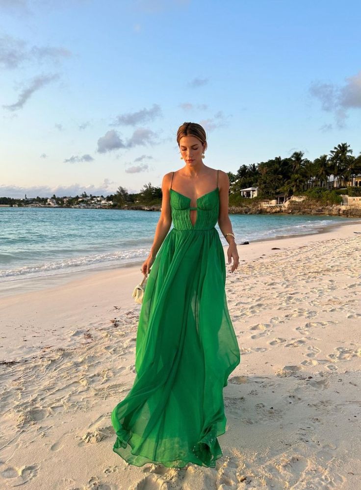Green A-line V-neck halter chiffon long evening gown party dress wedding guest dress HZ1023