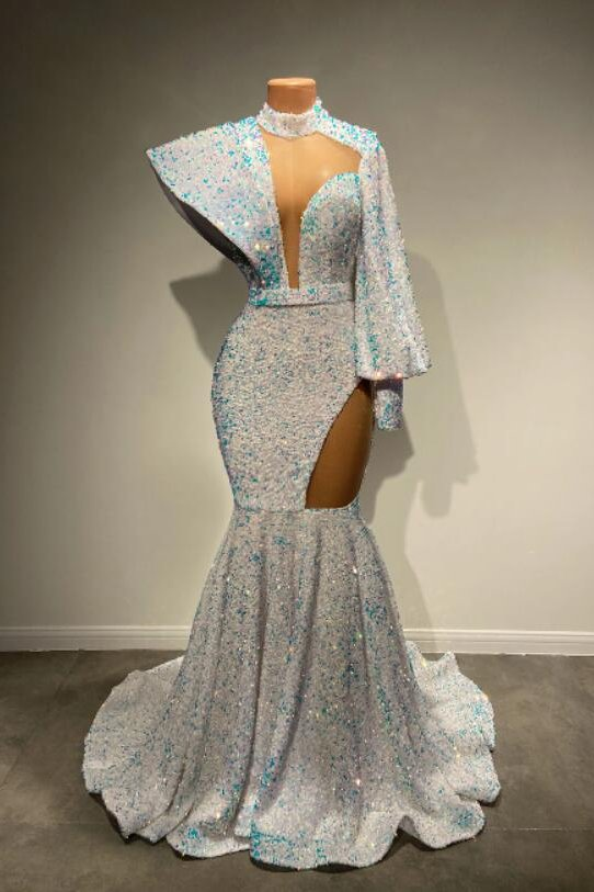 High Neck Long Sleeves Mermaid Prom Dress With Sequins HZ1023