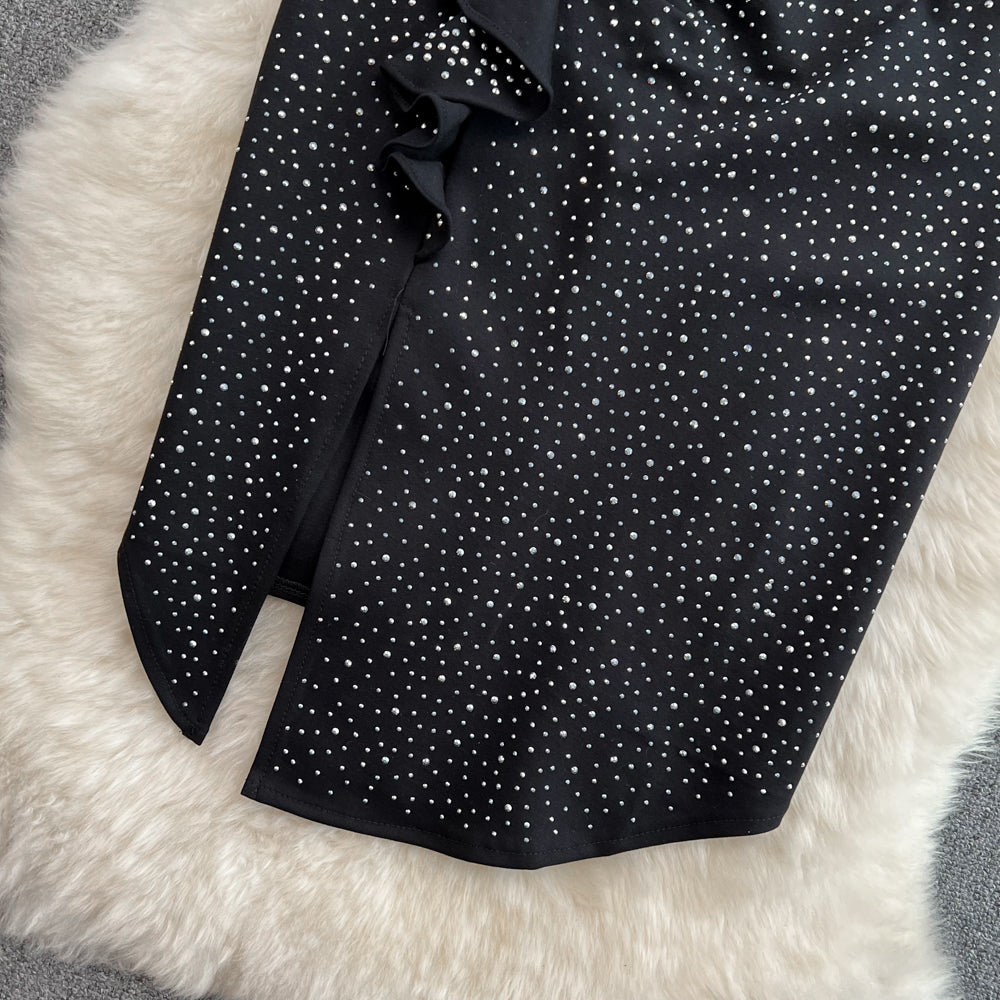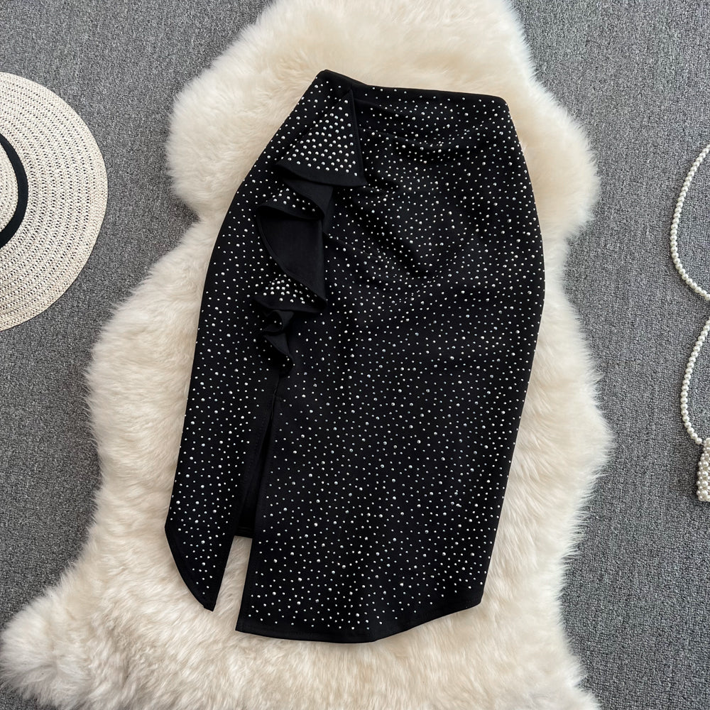 High waist slim diamond ruffled irregular A-line skirt HZ1023