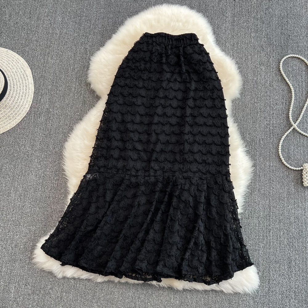 High waist, thin, medium and long, knee length lace fishtail skirt, female HZ1023
