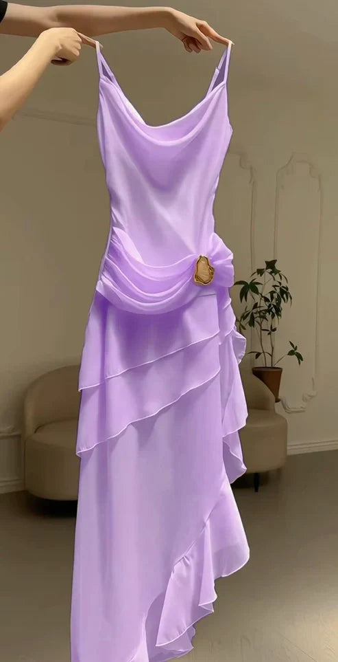 Ivory White Vintage Spaghetti Strap Long Chiffon prom dress Evening Dress Party Dress HZ1023