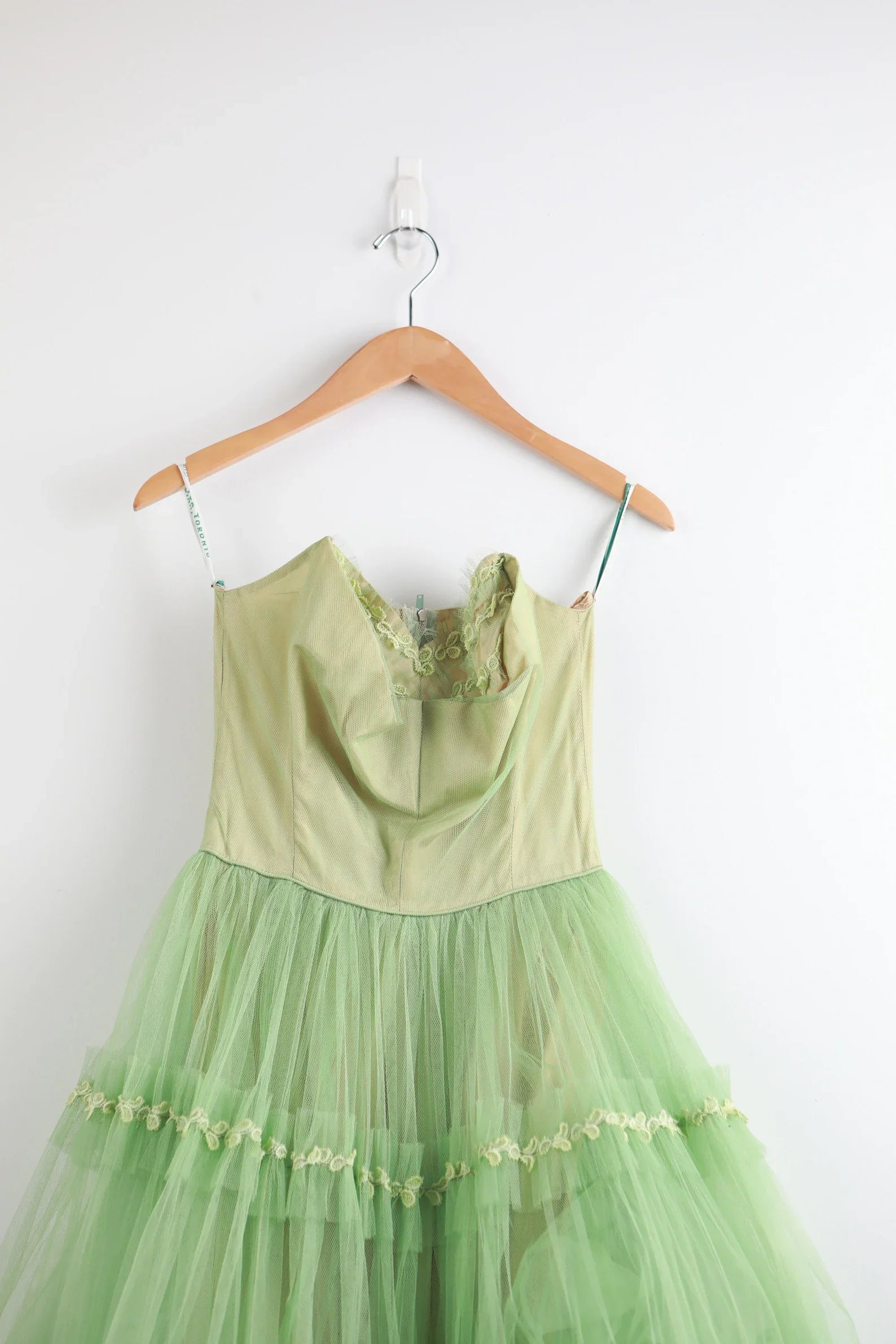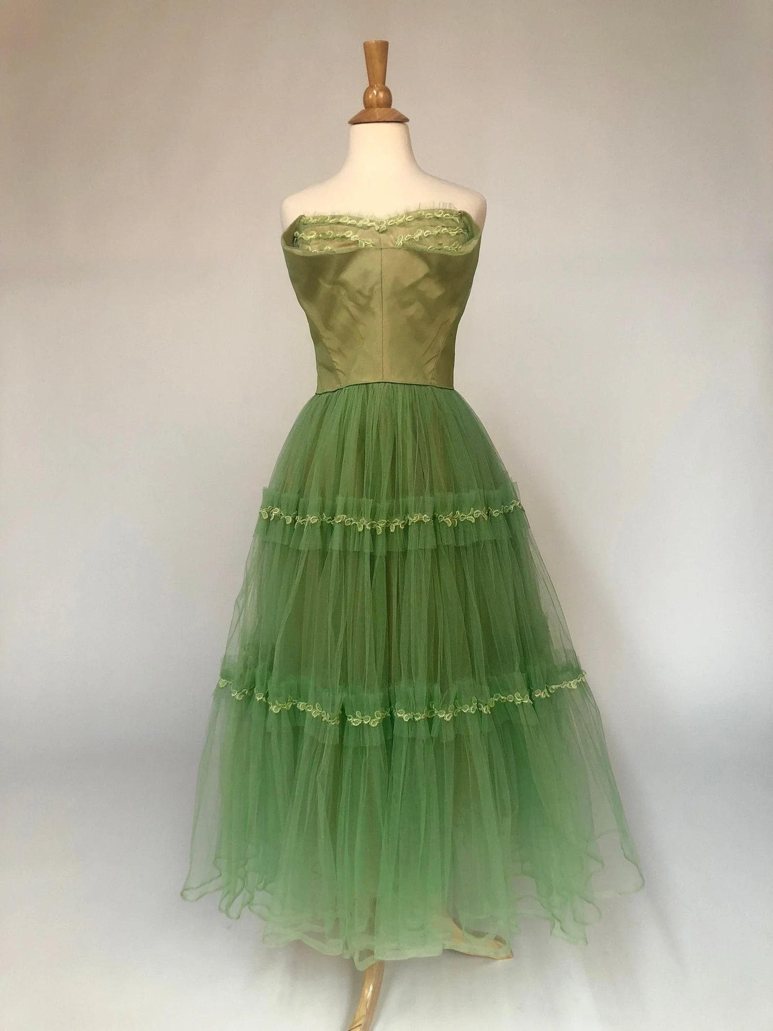 Light Green Retro Elegant Sweet Exquisite Lace Long Tulle Prom Dress Evening Gown Fairy Graduation Dress HZ1023