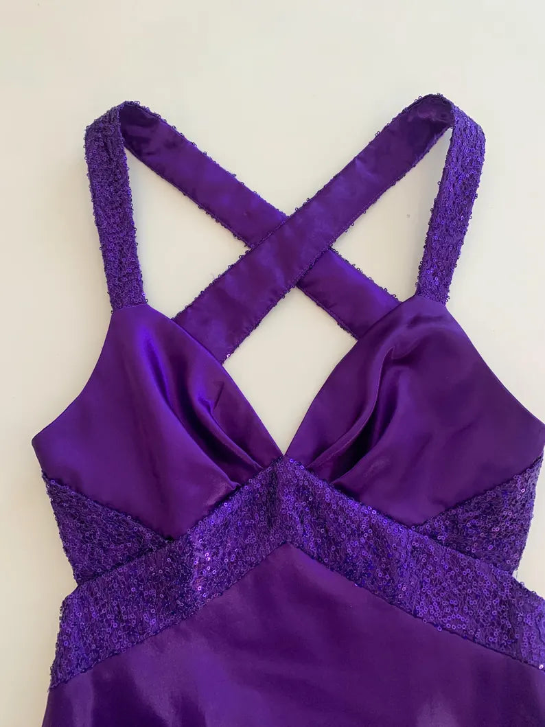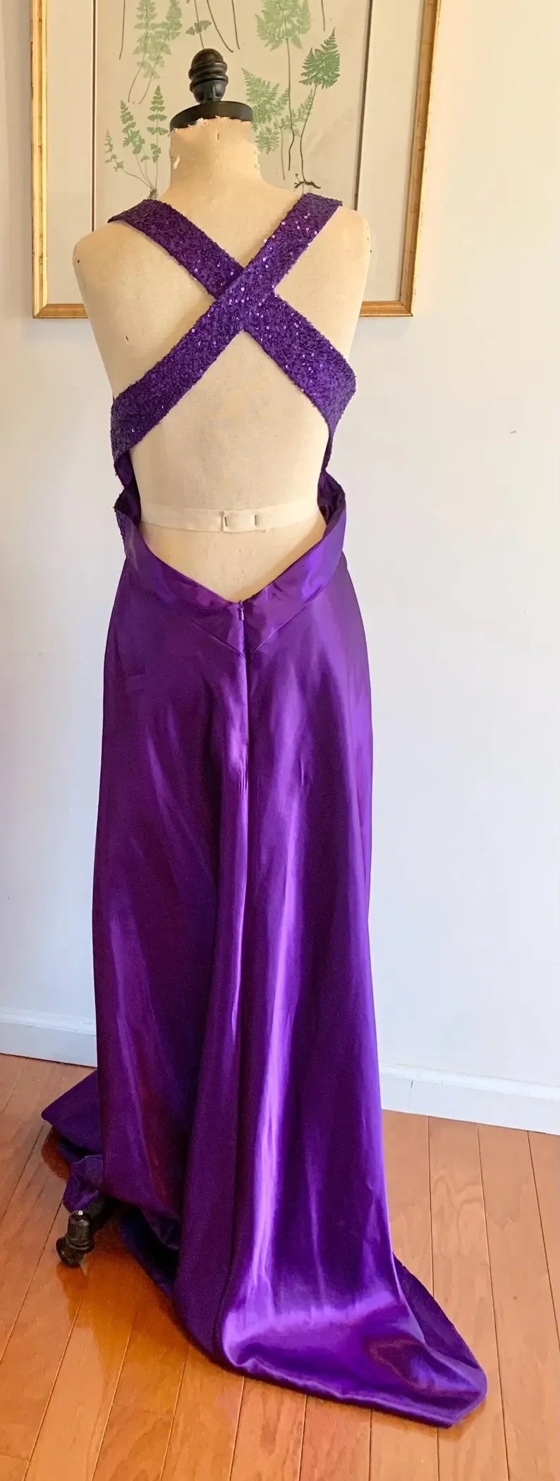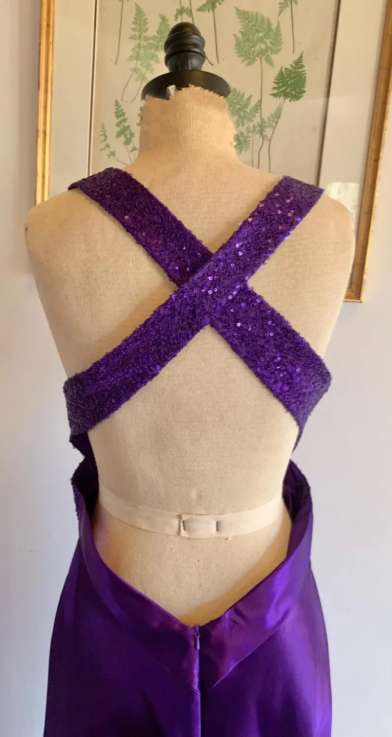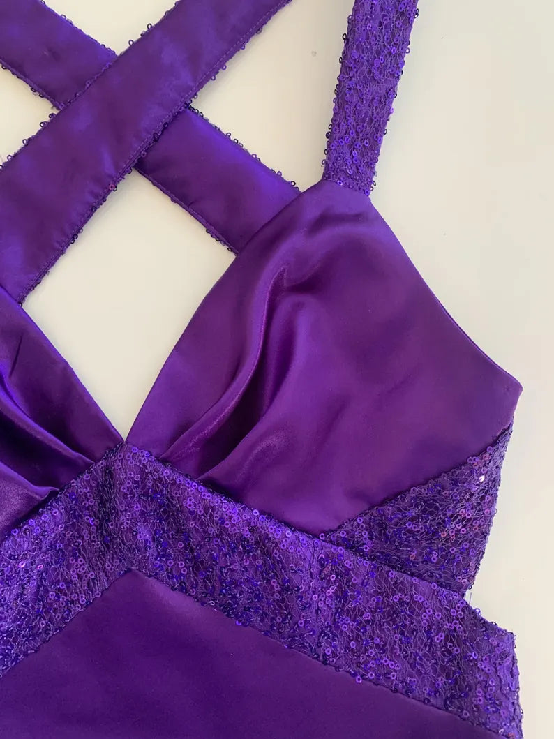 Purple Retro Fashion V-neck Elegant Exquisite Sequined Long Floor Length Satin Ball Gown Evening Dress Party; Dress HZ1023