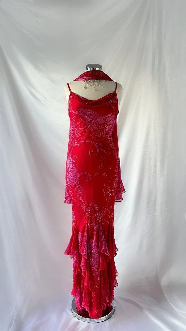 Red fashion elegant exquisite beaded spaghetti straps long ruffled chiffon ball gown evening dress party dress HZ1023