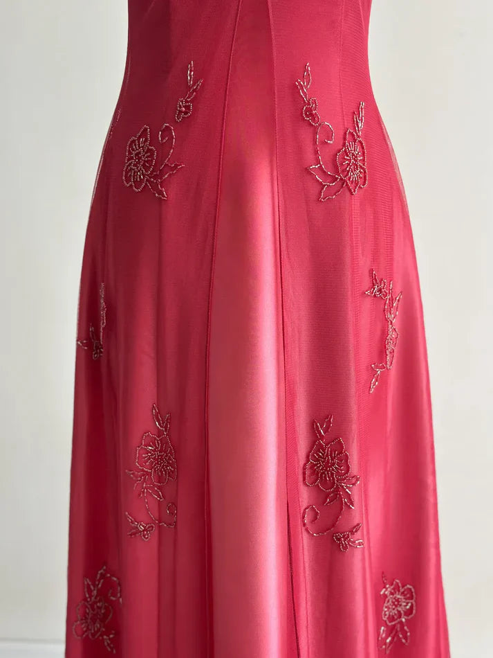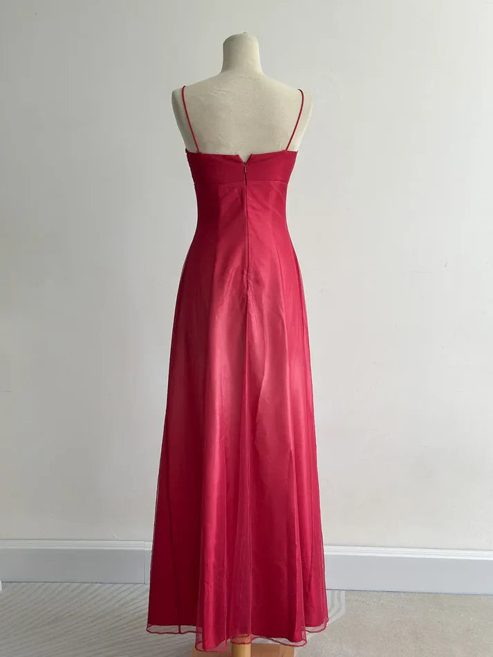 Red Fashion Elegant Exquisite Embroidery Beading Spaghetti Strap Long Tulle prom dress Evening Gown Party Dress HZ1023