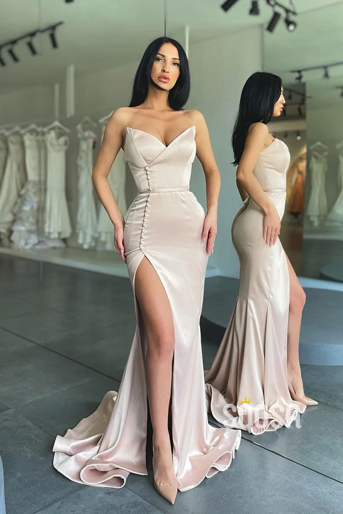 SEXY V-NECK HIGH SPLIT MERMAID PROM DRESS LONG HZ1023