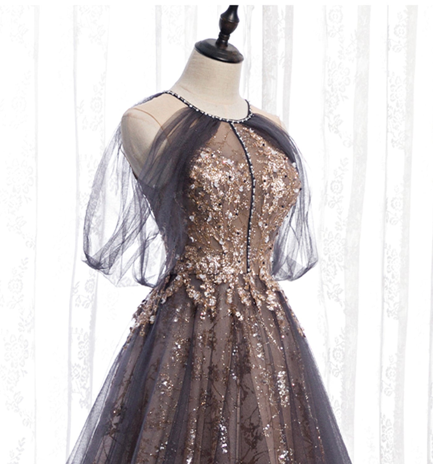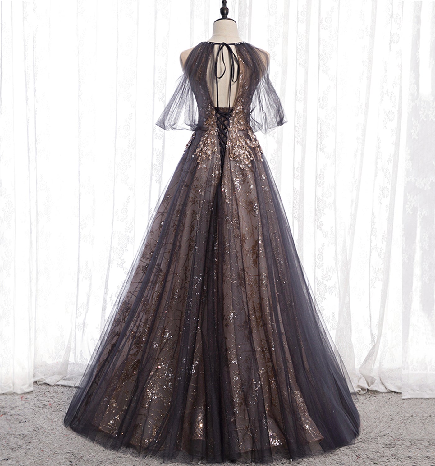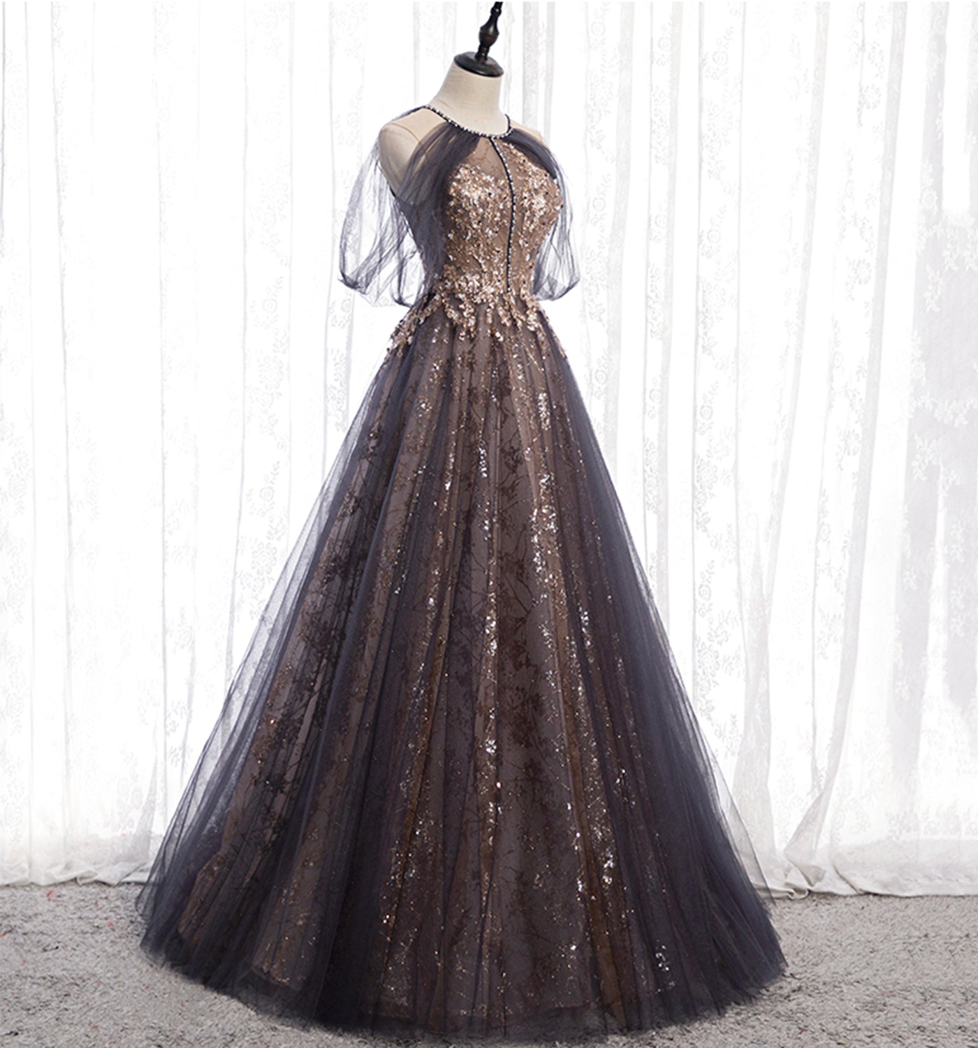 Stylish tulle sequins long prom dress evening gown HZ1023