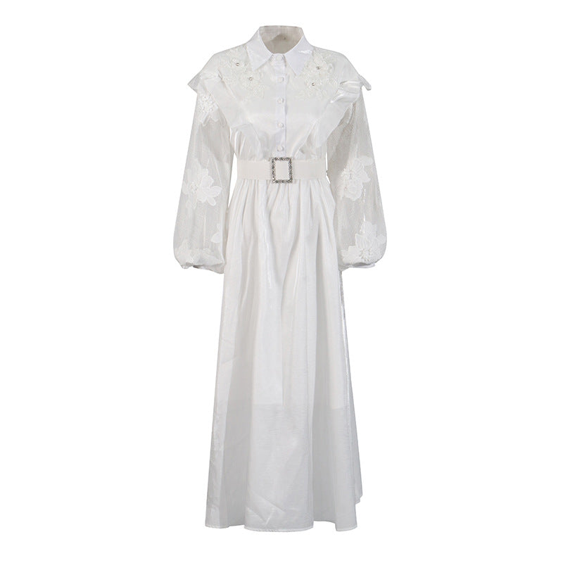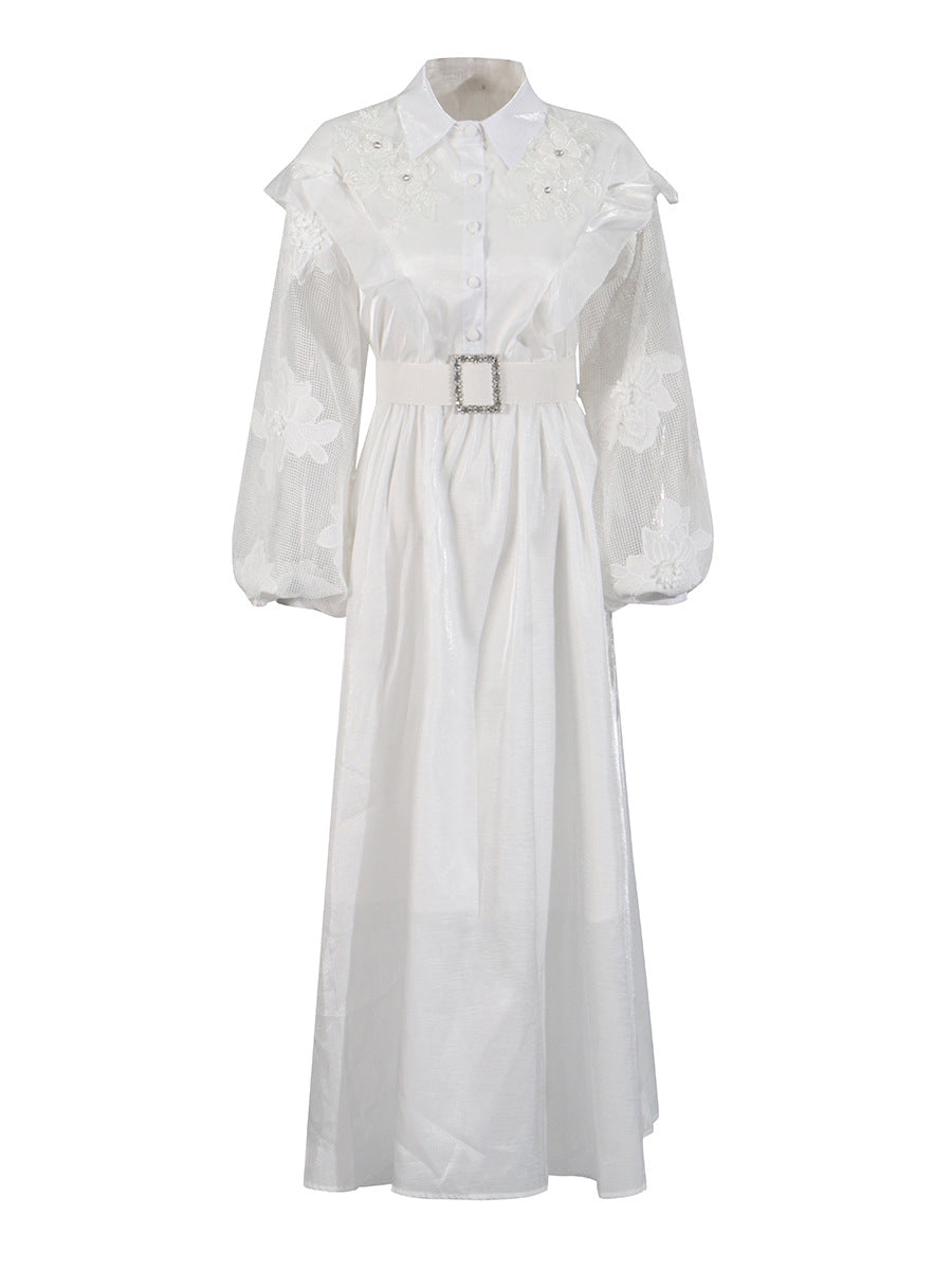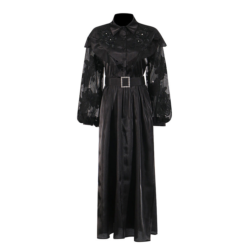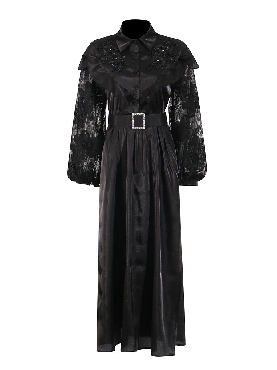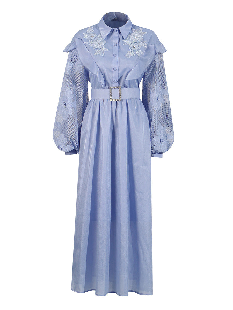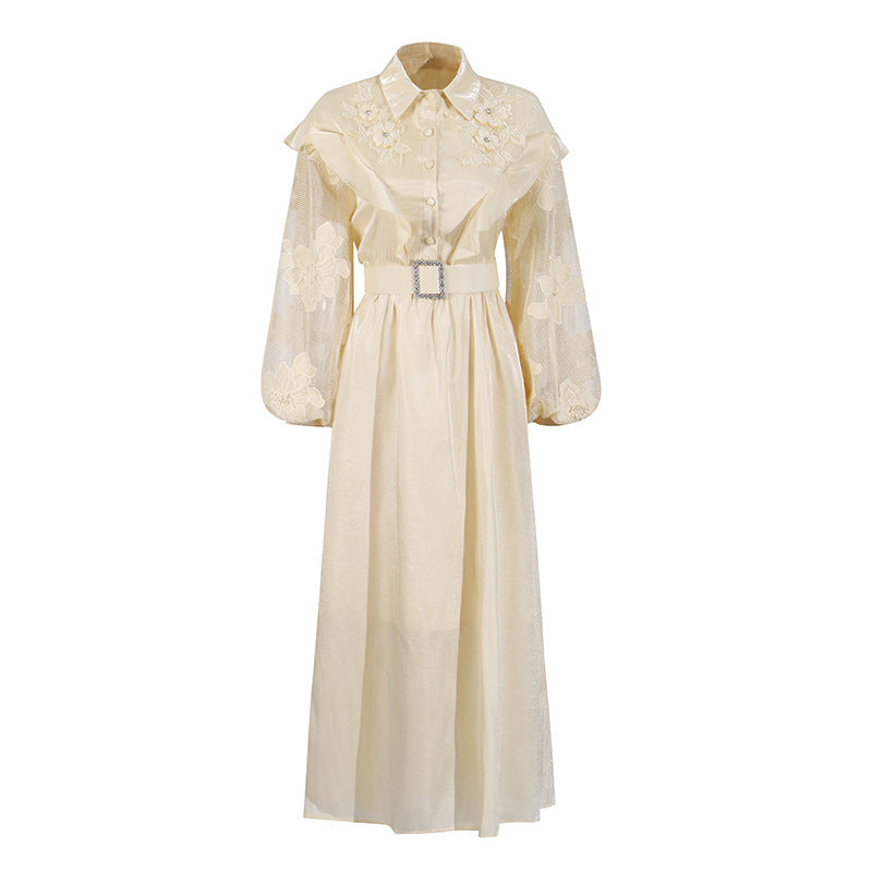 Temperament Fashion Elegant Style Dress 20254 New Collar Heavy Industry Embroidery Lotus Edge Lace Long 68HZ