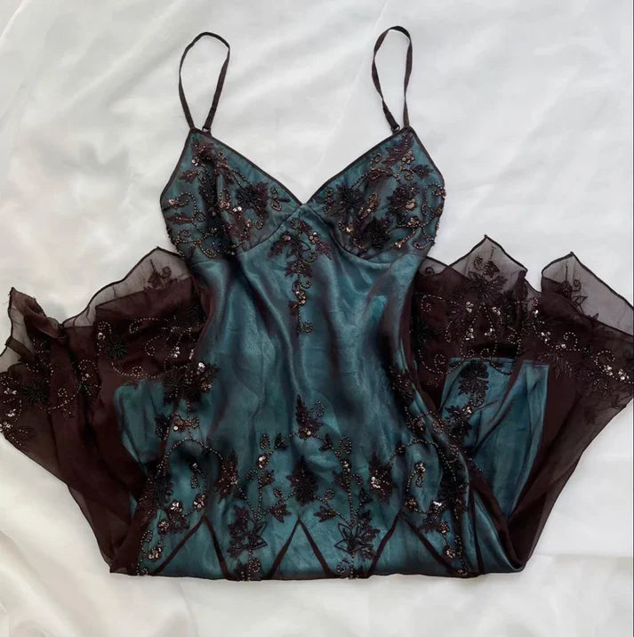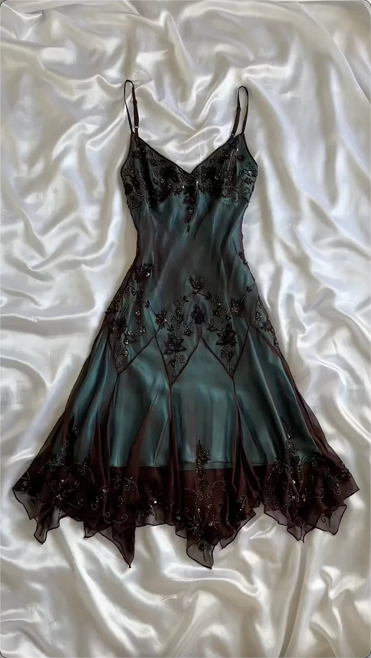 Turquoise Gorgeous Vintage Exquisite Beading Spaghetti Strap Long/Short Chiffon Ball Gown Evening Gown Party Dress Homecoming Dress HZ1023