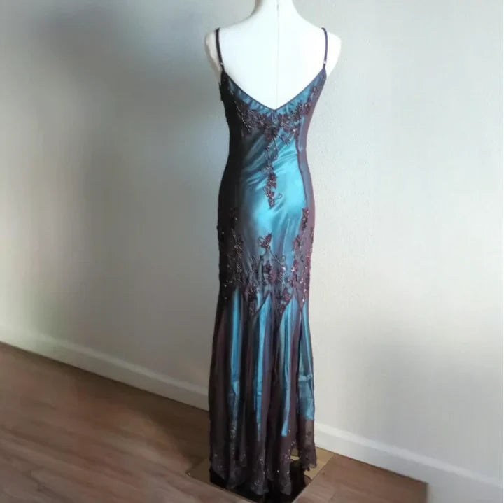 Turquoise Vintage Elegant Exquisite Floral Beading Spaghetti Strap Long Chiffon Ball Gown Evening Dress Birthday Party Dress Formal Women Prom Dress HZ1023