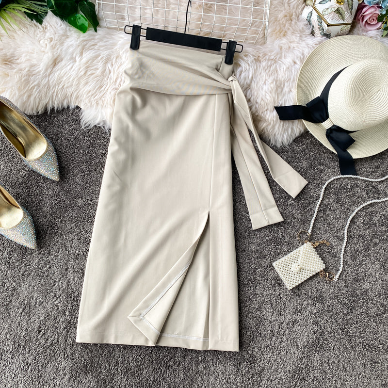 Versatile side slit skirt women's medium length high waist slim one-step skirt HZ1023